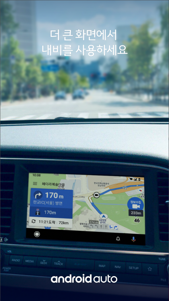 카카오내비가 만드는 더 쉽고, 더 즐거운 길안내를 경험할 수 있는카카오내비의 Kakao i로 더 쉽고 풍부해진 내비게이션 기능을 활용할 수 있습니다. 자동차로 어디를 가든, 이제 카카오내비라는 자신감을 탑재한 내비게이션으로 부상하였습니다.
