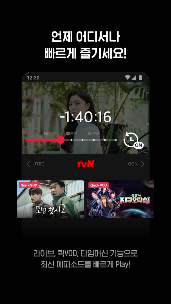 tvN, JTBC, Mnet, OCN 등 실시간 채널의 인기 콘텐츠를 퀵 VOD를 통해 가장 빠르게 즐겨보세요.