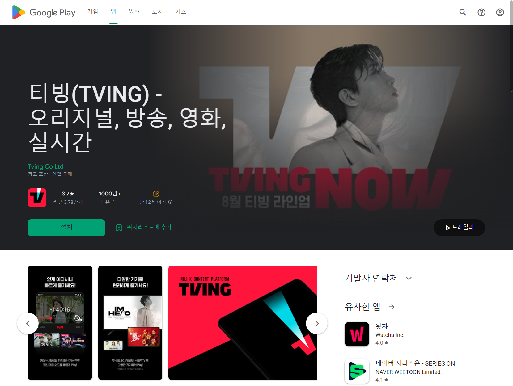 티빙(TVING) - 오리지널, 방송, 영화, 실시간 - Google Play 앱
