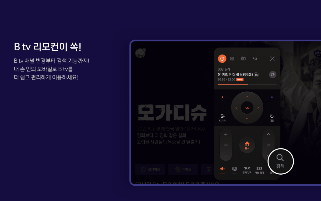 B tv 채널 변경부터 검색 기능까지 다 되는 모바일 B tv 리모컨!