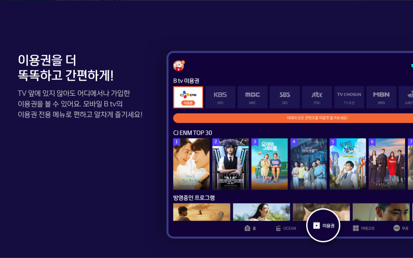 이용권을 볼 수 있어요. 모바일 B tv의