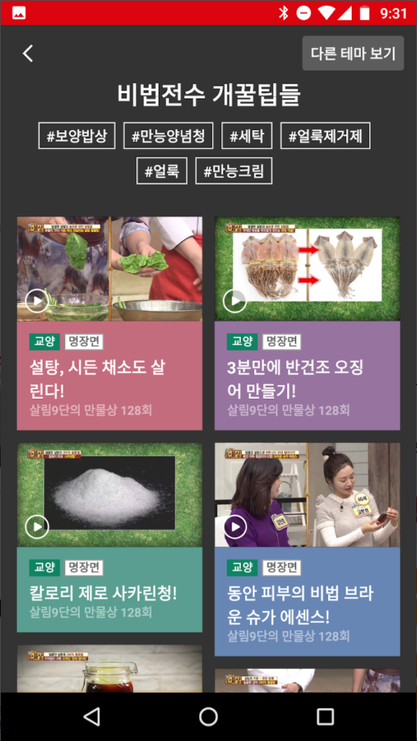 편성표 및 다시보기, 테마 명장면